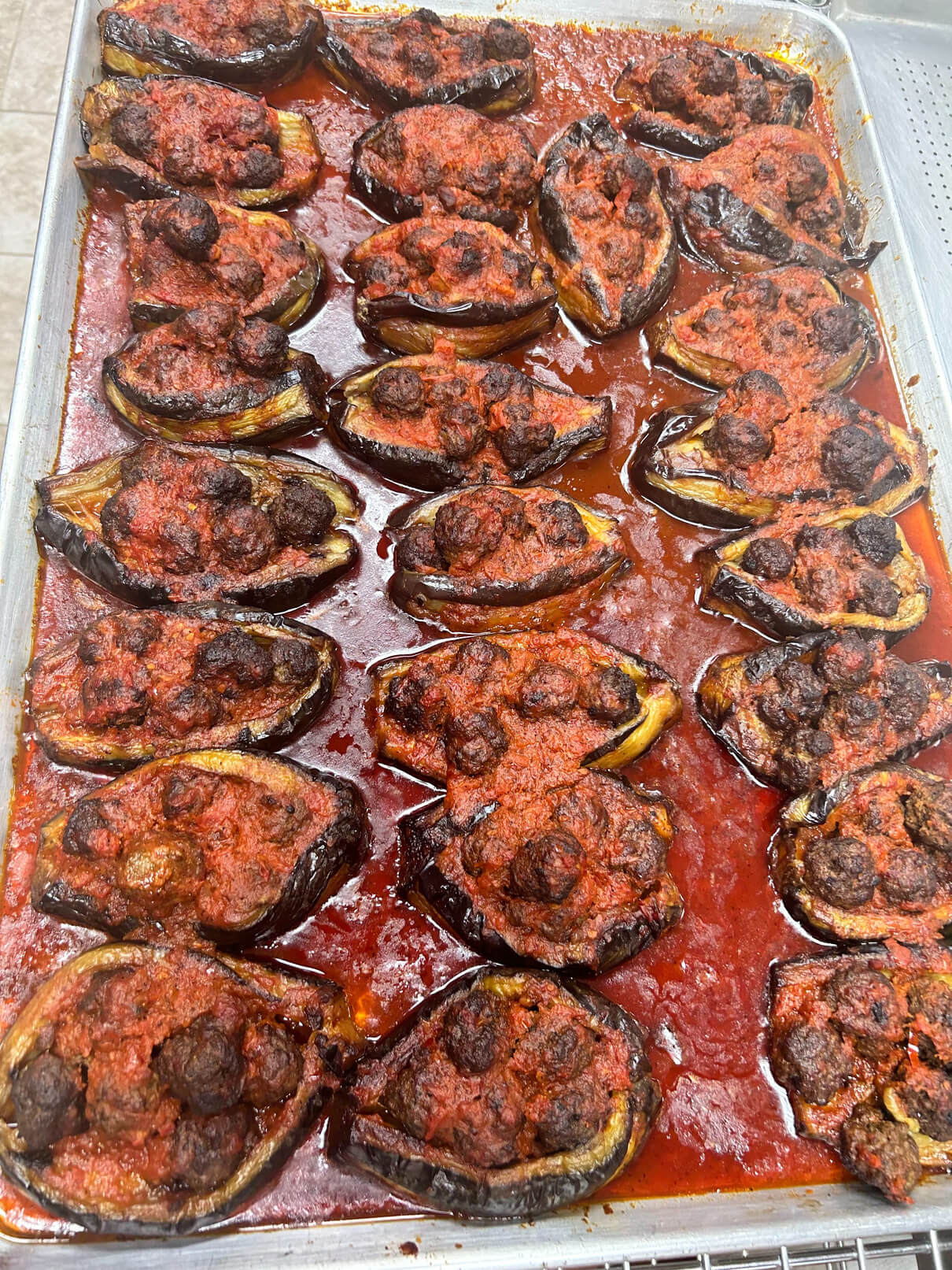 whole eggplant,small meat balls,tomatoes sauce each $9